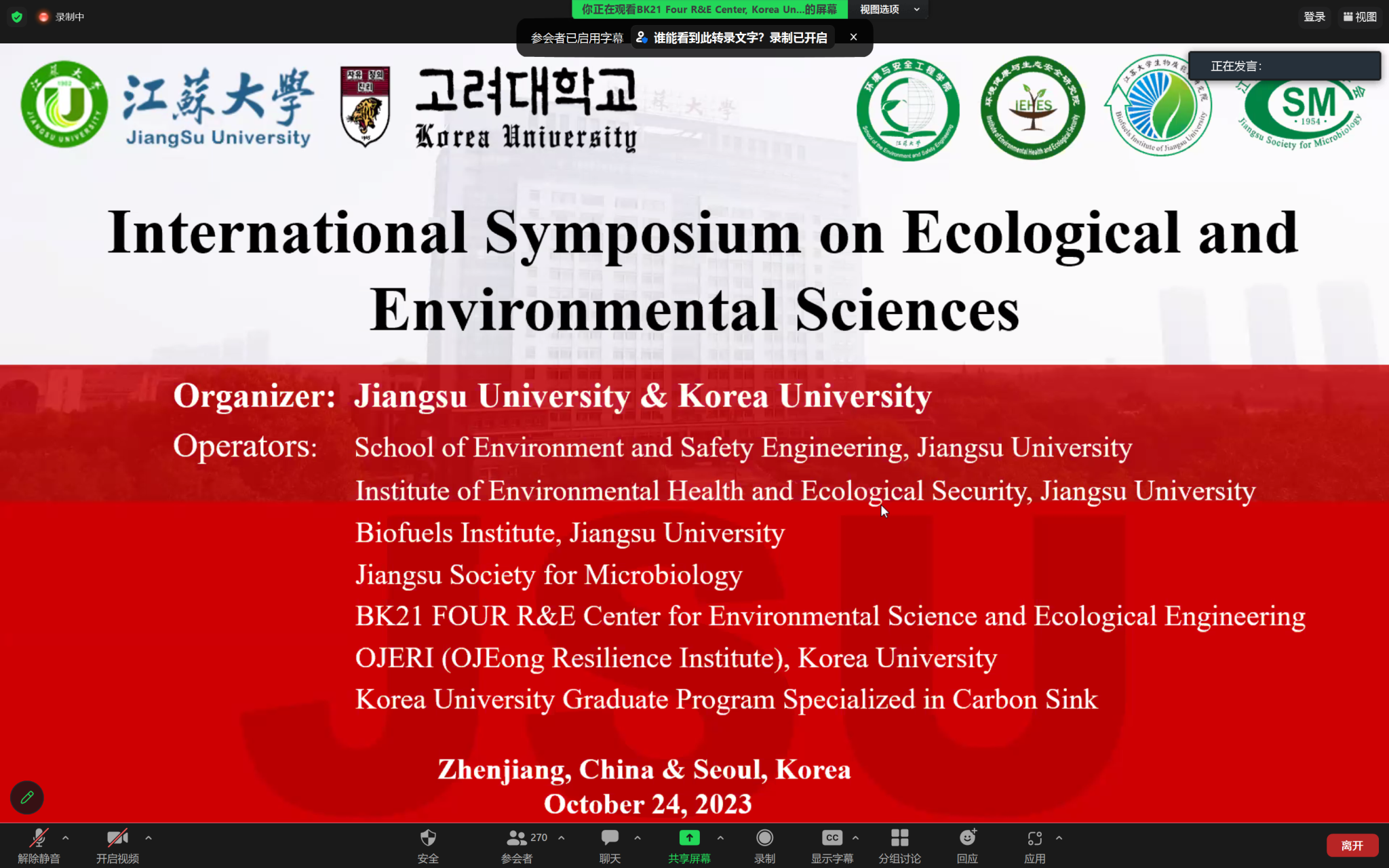 与韩国高丽大学联合主办的《生态与环境科学国际研讨会》在Zoom线上会议平台顺利召开。厕所偷拍