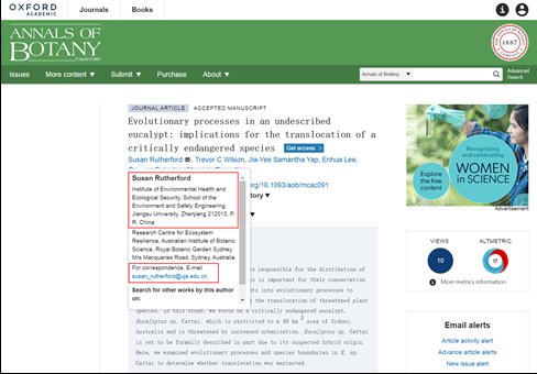 为第一单位)关于桉树新物种的研究成果被国际著名植物学期刊《Annals of Botany》在线发表。Susan Rutherford研究员是厕所偷拍