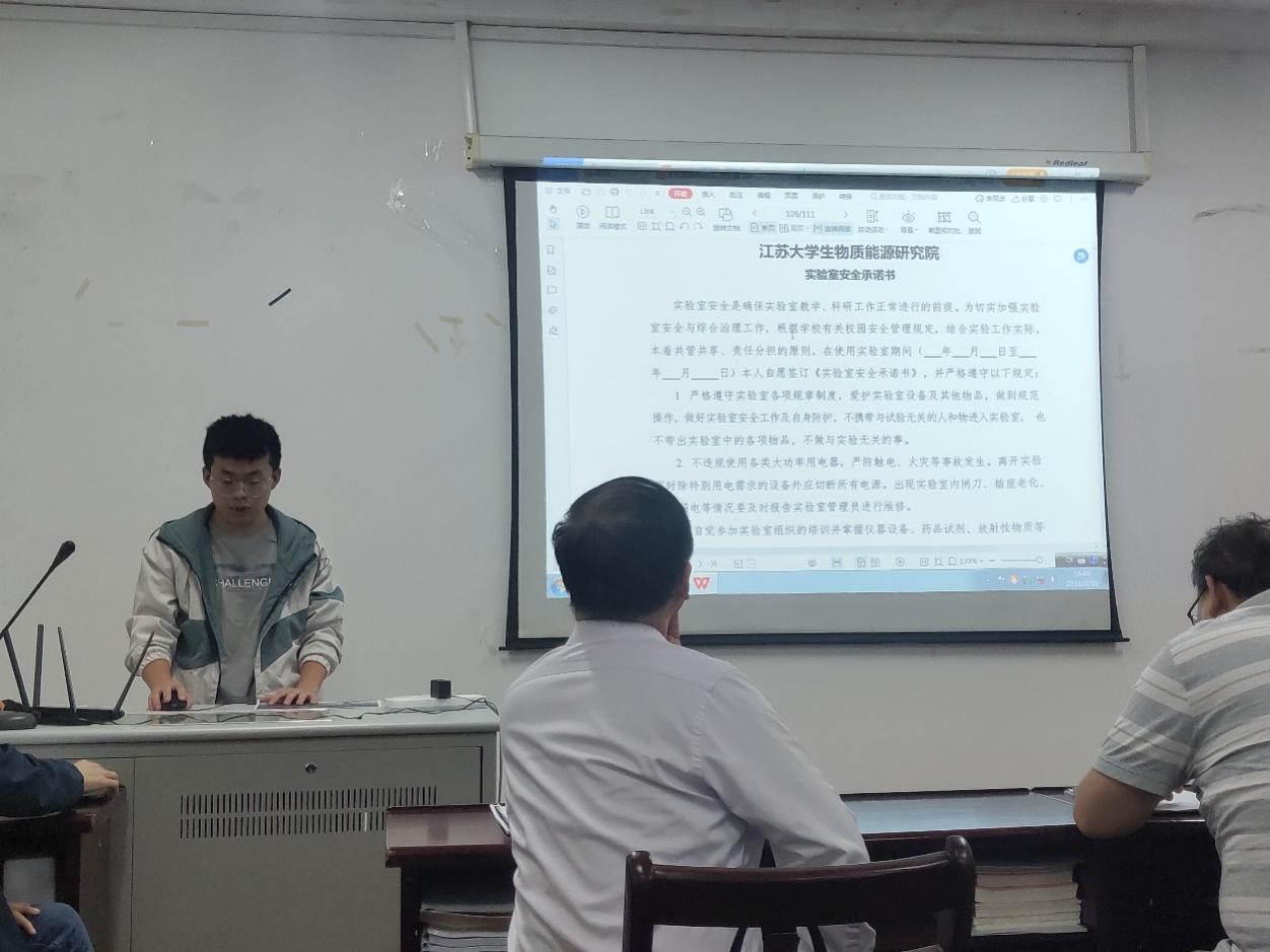 会议中,研究生主席团代表带领全体师生宣读承诺书,积极发言,表示通过安全教育大会非常及时,收获良多,将认真遵守学校和学院各项规章制度,时刻把实验室安全放在第一位,并积极对实验室安全制度和管理制度提出建议。