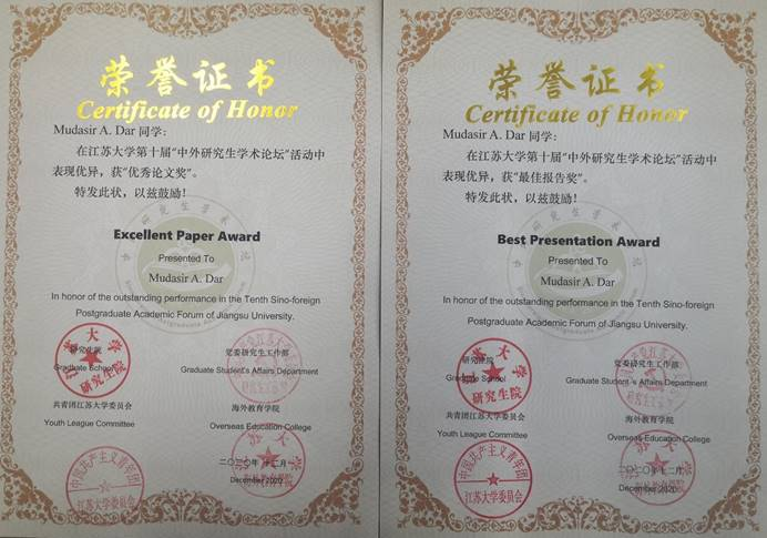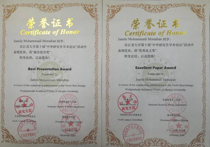 近日,厕所偷拍 研究生在厕所偷拍 中外研究生学术论坛理工论坛I取得佳绩, Jamile 和 Mudasir 获得“最佳报告奖”和“优秀论文奖”,许丽霞和朱开达分别领衔的中外研究生合作小组获得了“中外研究生同室创新奖”,薛苗苗同学获得“优秀展示奖”。