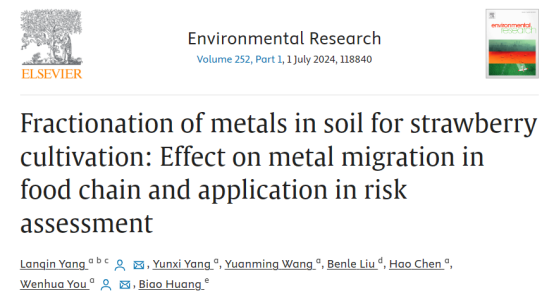 最新研究论文“Fractionation of metals in soil for strawberry cultivation: Effect on metal migration in food chain and application in risk assessment”在Environmental Research (IF: 8.3)上在线发表。厕所偷拍