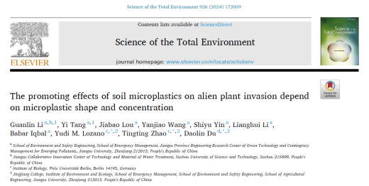 最新研究论文“The promoting effects of soil microplastics on alien plant invasion depend on microplastic shape and concentration”在Science of the Total Environment (IF: 9.8)上在线发表。厕所偷拍