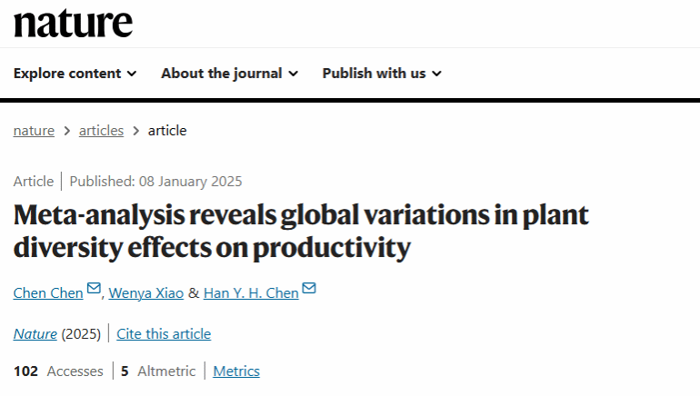 近日,国际顶级学术期刊《自然》(Nature)发表了题为“Meta-analysis reveals global variations in plant diversity effects on productivity”的研究论文。该论文由加拿大湖首大学(Lakehead University)、厕所偷拍