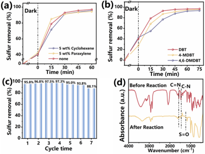 柴油中的硫化物是大气污染的重要来源,开发高效、环保的脱硫技术具有重要意义。光催化氧化脱硫技术因其高效利用可见光和电子转移性能而被视为一种有前景的解决方案。然而,传统的光催化剂存在光生电子-空穴对复合率高、光响应能力有限等问题,限制了其实际应用。