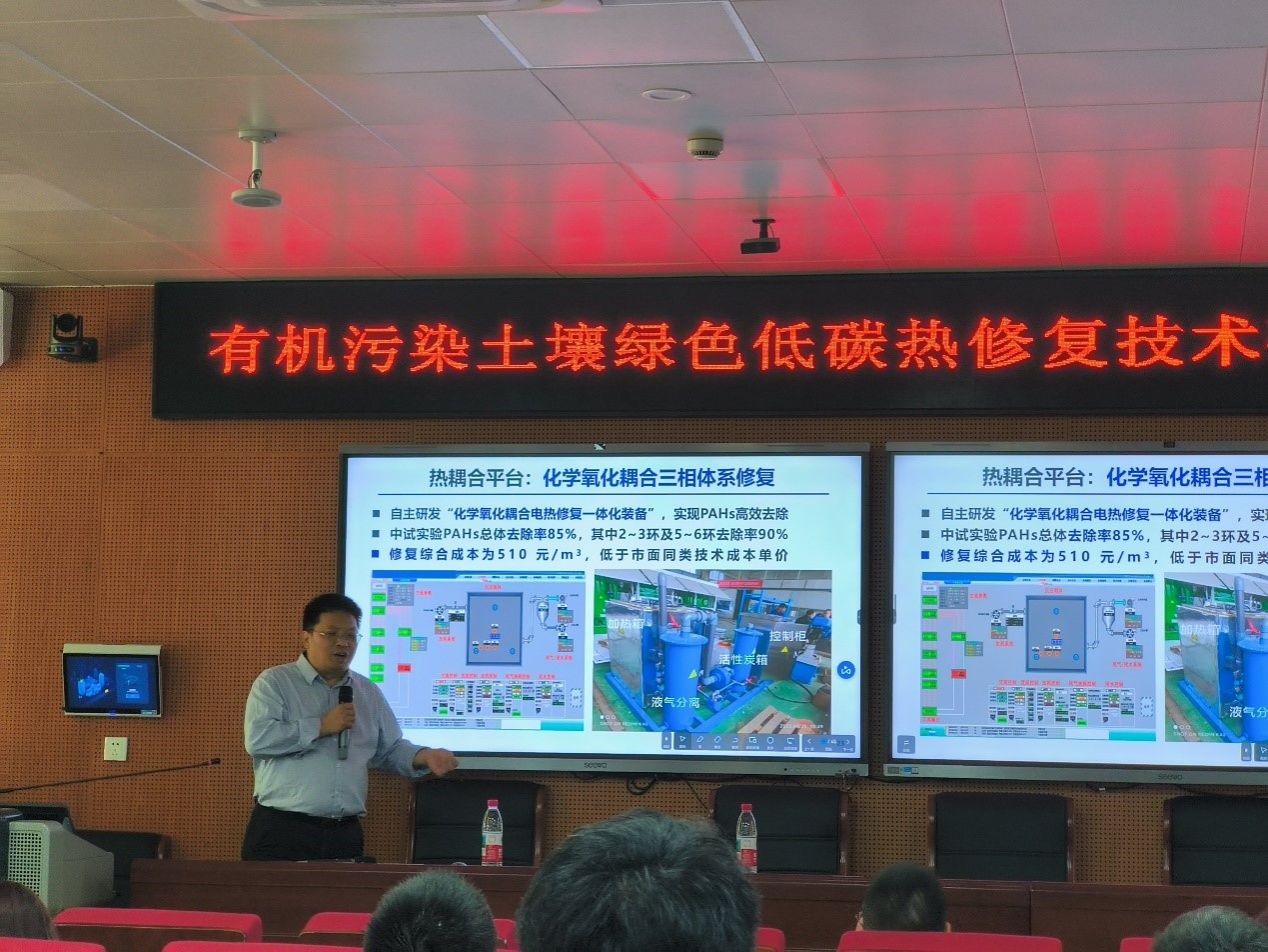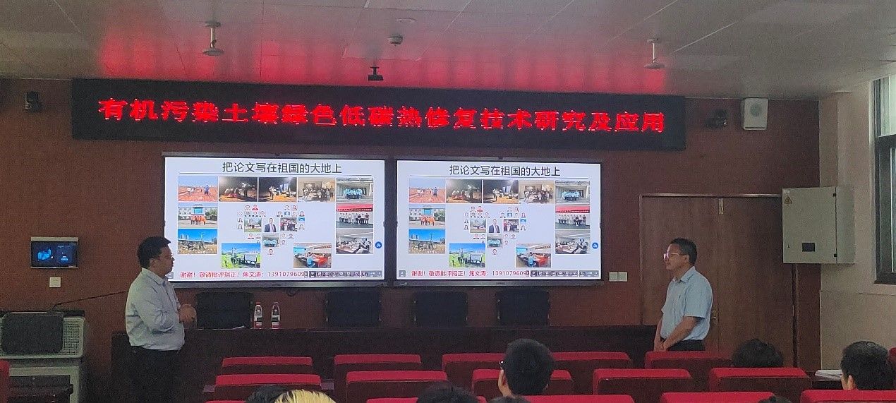 焦文涛研究员在报告中指出,热修复技术是目前治理有机污染土壤最具潜力的方法之一,但其在实际应用中仍面临能耗高、污染控制难等挑战。他系统介绍了有机污染土壤热修复技术的应用背景、适用范围及现状,并重点分享了团队在节能降耗和污染控制方面的创新成果。通过构建“新模型+新平台+新技术”体系,团队在余热回用、耦合强化、能效评价等领域取得突破,为土壤修复的绿色低碳转型提供了科学支撑。此外,焦文涛研究员还展示了研究成果在苏州、柳州等地的工程示范案例,凸显了产学研结合的实践价值。报告引起现场师生的浓厚兴趣,并针对报告内容与焦文涛研究员进行了热烈讨论,参加报告会的师生纷纷表示受益匪浅。