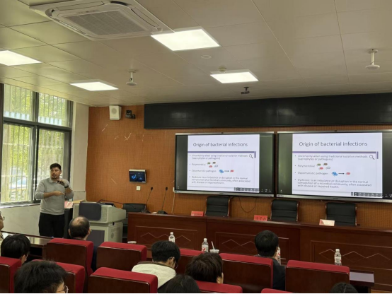 主办的金山环境创新发展论坛上,西班牙加泰罗尼亚水研究所高级研究员Carlos Omar Lomeli博士,围绕“生物防治在行动:利用噬菌体影响微生物动态与生态系统健康”展开核心分享,65余名师生参与。