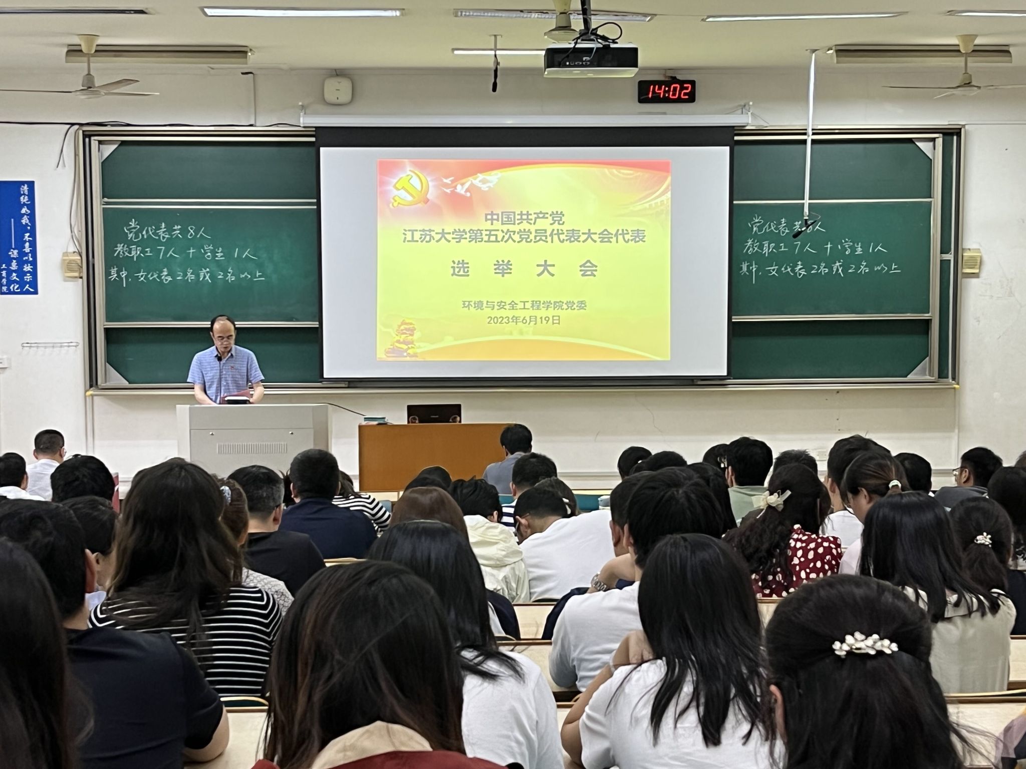 在讲堂群101召开全体正式党员大会,选举产生出席学校第五次党代会的代表。学院10个支部共计154名正式党员参加了大会,校党建专员张九如出席大会,会议由学院党委书记黄勇强主持。
