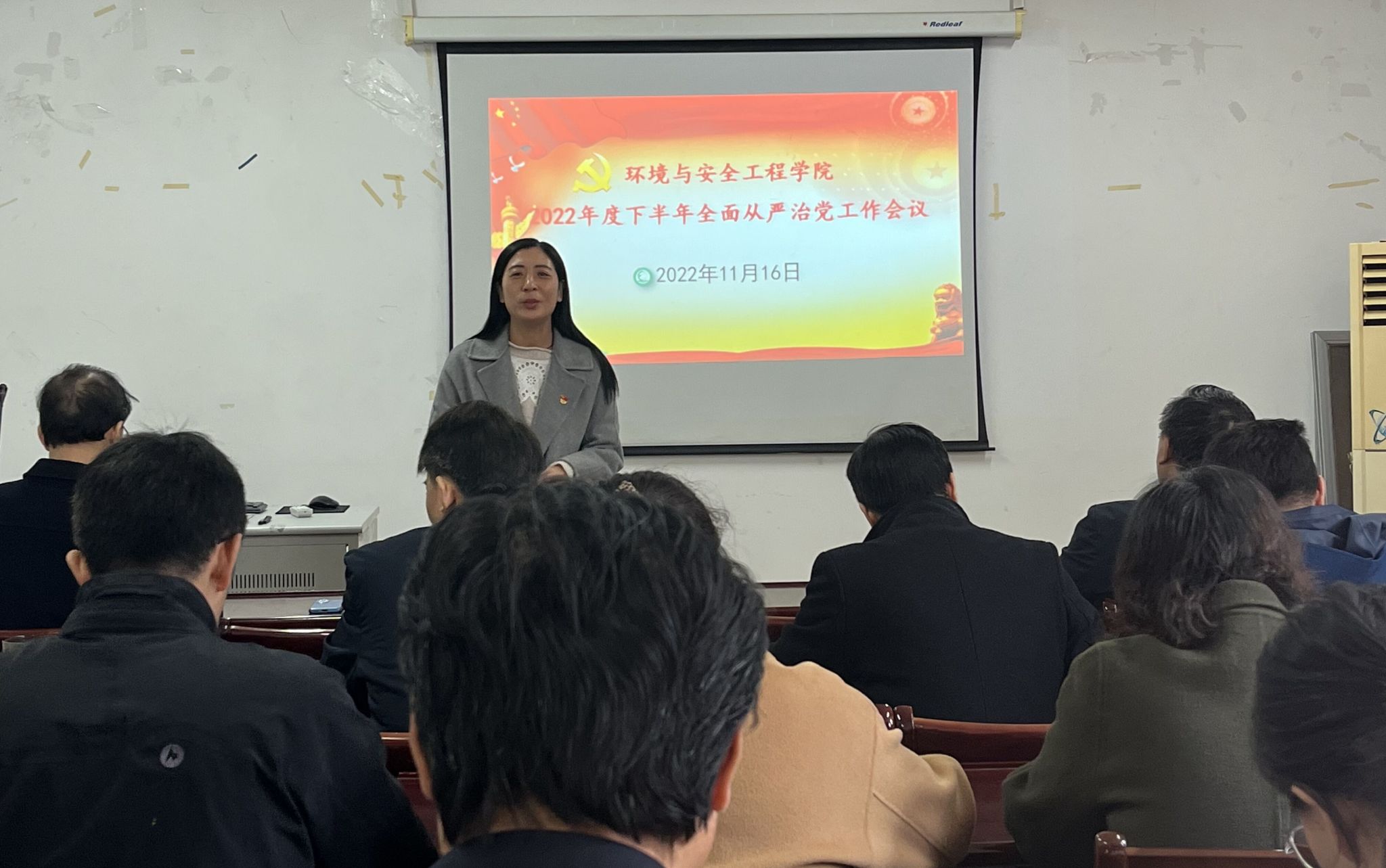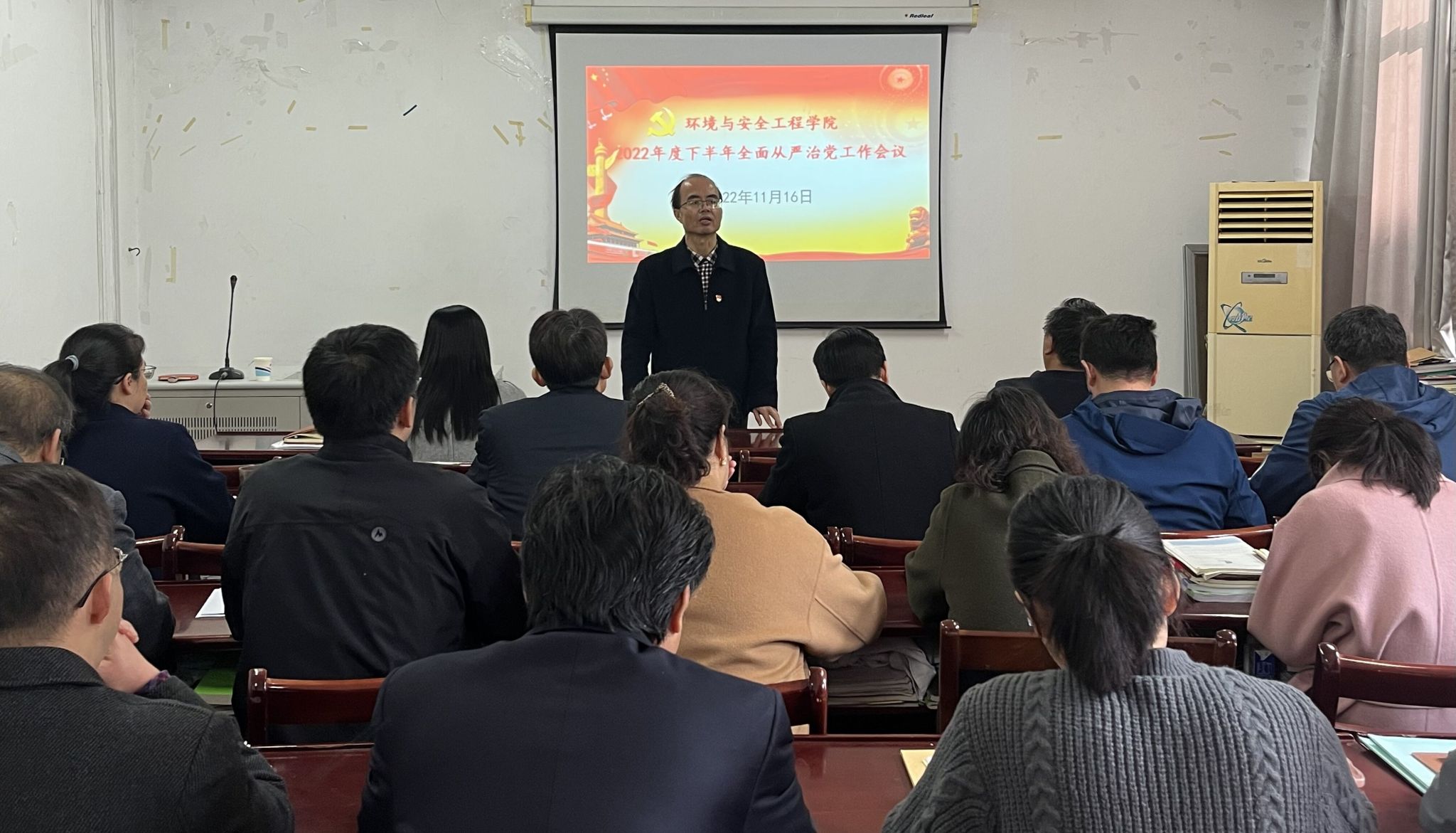 党委组织召开2022年度下半年全面从严治党专题会议,学院领导班子全体成员、党委委员、教工支部书记、学院二级单位正副主任,以及全体行政管理科级人员参加了会议。