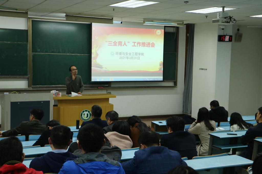推进会上,黄勇强通报了学院“五位一体”育人模式和“三全育人”质量提升工作实施方案。他指出,学院坚持党委统一领导,健全机制,为推动“三全育人”工作提供制度保障,学院党委牢牢把握“三全育人”综合改革试点总要求,坚持把立德树人作为中心环节,把思想政治工作贯穿教育教学全过程,统筹设计环境与安全学科一体化育人模式。学院成立“三全育人”十个工作小组,分条线全面推进学院的“三全育人”工作。从任课教师、学业导师、科研导师、系主任、党政管理人员等五个不同主体、不同侧面开展协同育人,按照“十大育人体系”要求,形成良性的全员育人格局。