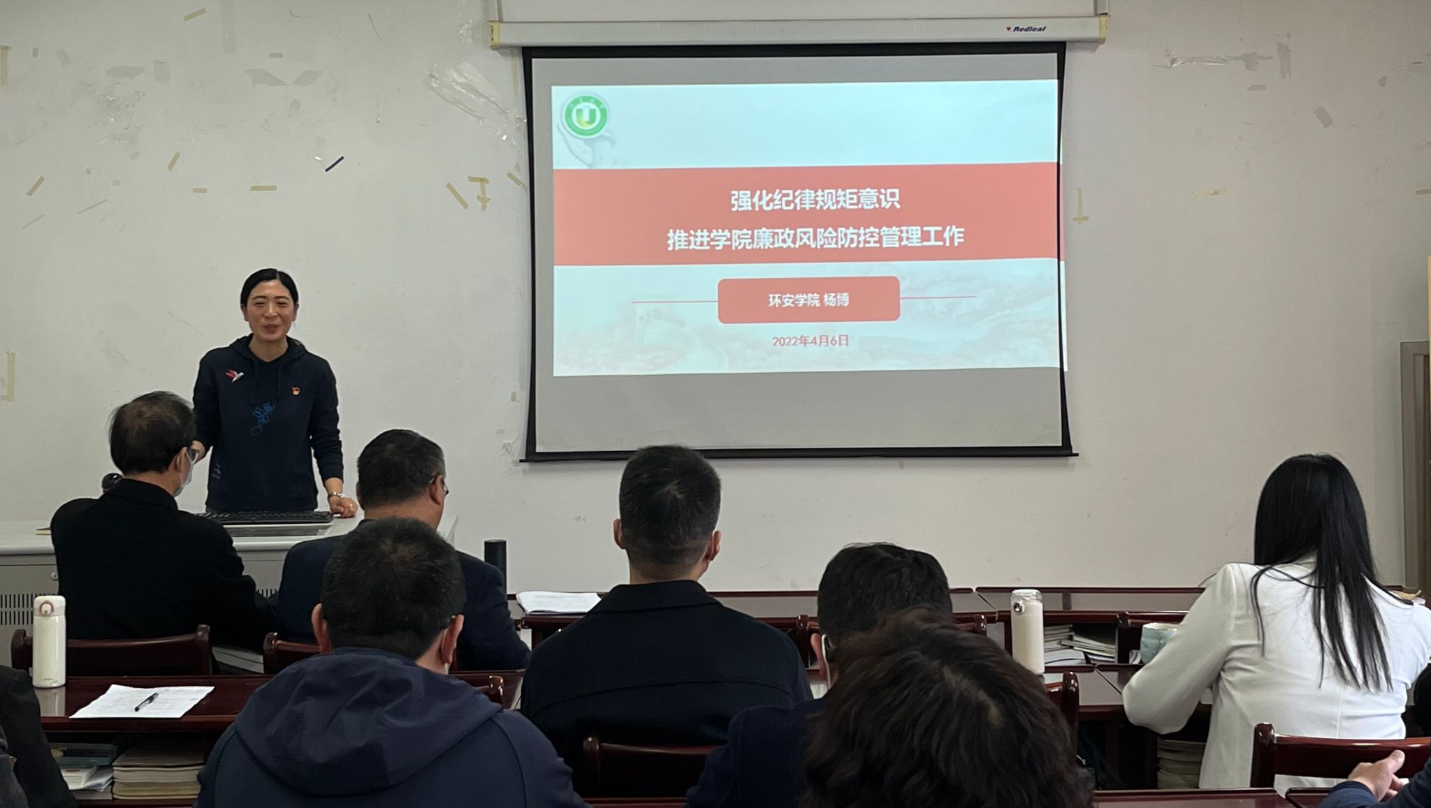 学院党委副书记兼纪检委员杨博同志作了党风廉政专题讲座,对学院2022年度全面从严治党和党风廉政建设工作进行了总体部署。她指出,要在准确把握全面从严治党新形势的基础上,以高校重点领域典型案例为戒,强化纪律规矩意识,推进学院廉政风险防控管理工作。具体有四点要求:一是加强自身建设,明确领导责任,层层压实责任;二是健全制度,提高制度执行力,切实提高规范化管理水平;三是全面查找廉政风险点,逐步构建长效机制;四是充分发挥党支部纪检委员的监督作用。