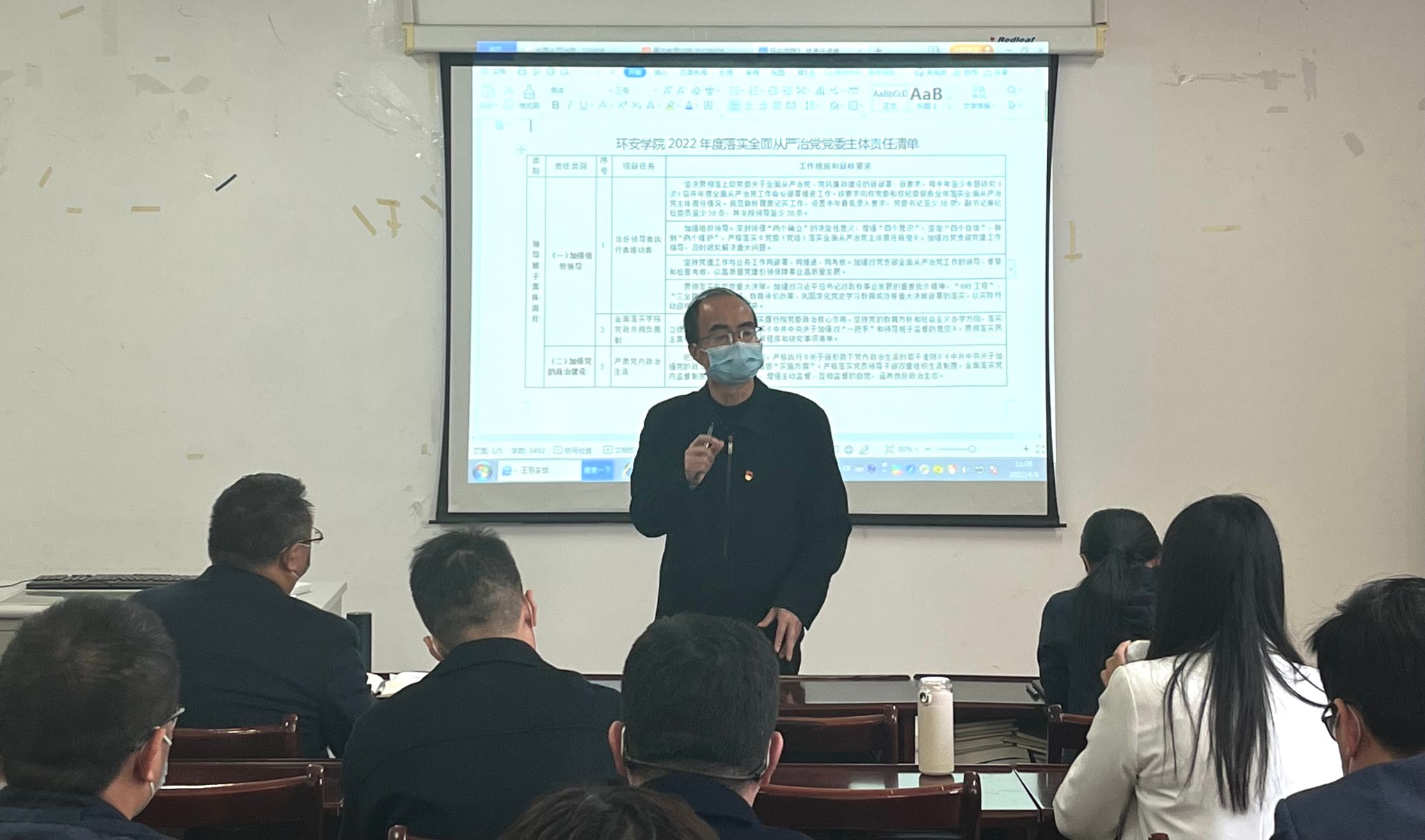 在学院2311会议室召开2022年度全面从严治党工作会议。学院领导班子、党委委员、党支部书记和纪检委员、二级单位主任、科级干部参加会议。会议由党委书记黄勇强同志主持。