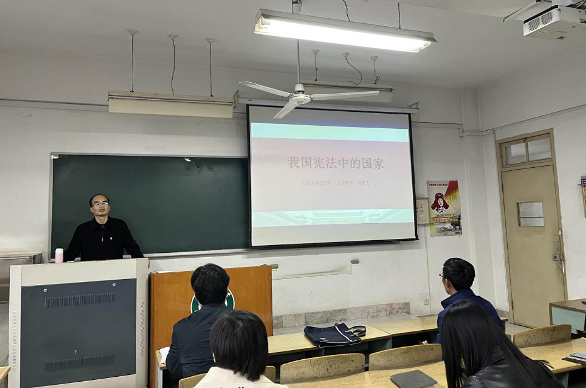 党委在主A楼405举办《中华人民共和国宪法》专题讲座,邀请法学院教授肖建飞作为主讲嘉宾。学院50余名教职员工到场聆听,讲座由学院党委书记黄勇强主持。