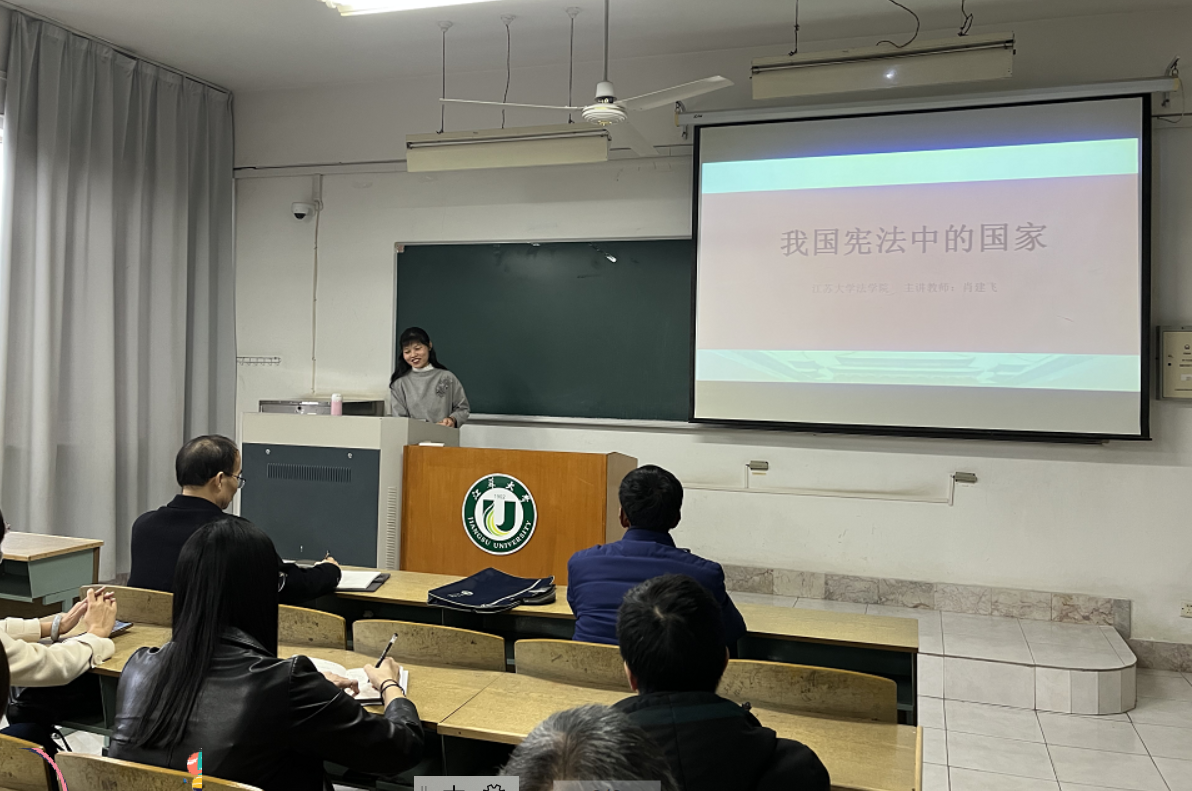 肖建飞教授以“我国宪法中的国家”为题,围绕“中国人国家观念的变迁,宪法中公民与民族涵义,党与政府承担无限责任,国家建设总布局与目标”四个方面,深入细致地阐释了“国家”的三个含义,她强调,第一我国宪法确立了人民的主体地位,组织国家是为了保障人民基本权利;第二我国以公有制为主体,对应的上层建筑是无限责任政府,中国共产党是使命型政党;第三2018年宪法修正案对中国特色社会主义事业总体布局进行了丰富和完善,物质文明、政治文明、精神文明、社会文明、生态文明五位一体协调发展。讲座内容丰富、论述详实,有理论高度,更具实践指导意义。参加讲座的老师们听得聚精会神、意犹未尽,个别老师还与肖教授展开热烈讨论。大家进一步认识到宪法修改的重大意义,表示将以实际行动学习宪法、遵守宪法、维护宪法、运用宪法,将为中国特色社会主义事业,特别是为生态文明建设贡献自己最大的力量。