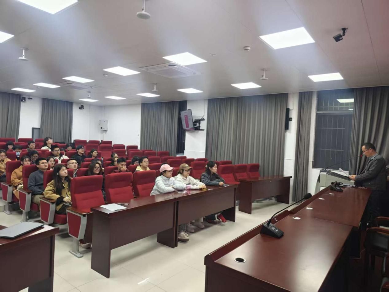 在讲解“全会的基本原则和发展目标”时,赵书记结合学院发展与学科特色,对坚持党的全面领导、坚持以人民为中心、坚持深化改革开放、坚持系统观念等基本原则进行了深入浅出的解读,并详细剖析了“十五五”时期我国发展的主要目标和2035年远景目标,引导大家将个人发展融入国家发展大局。